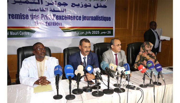 أشرف معالي وزير الثقافة والفنون والاتصال والعلاقات مع البرلمان، الناطق باسم الحكومة، السيد الحسين ولد مدو، اليوم الجمعة في نواكشوط، على حفل توزيع جوائز النسخة الخامسة من مسابقة التميز الصحفي.
