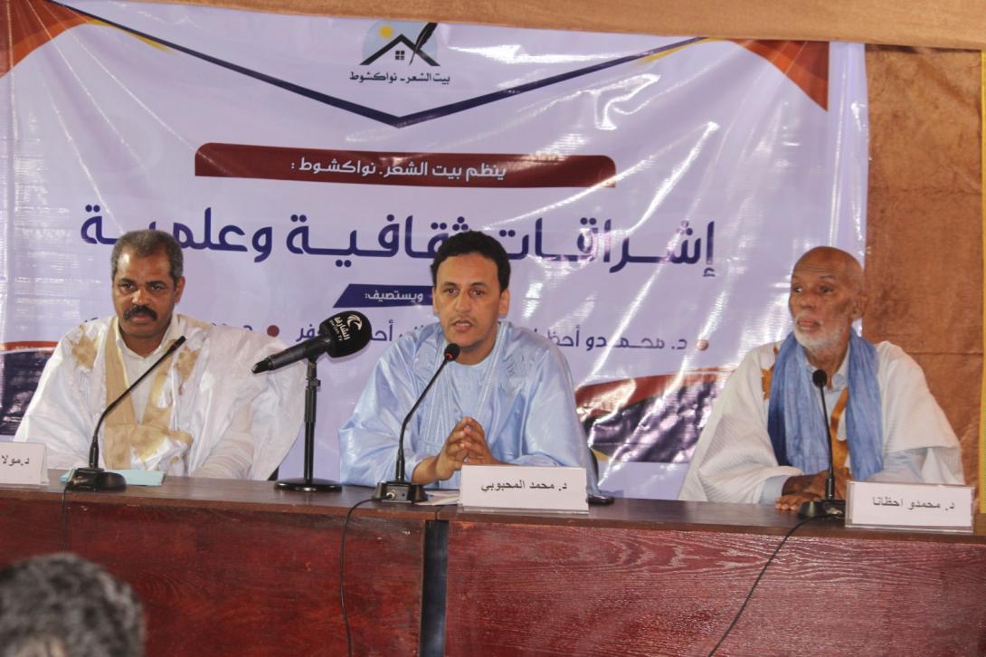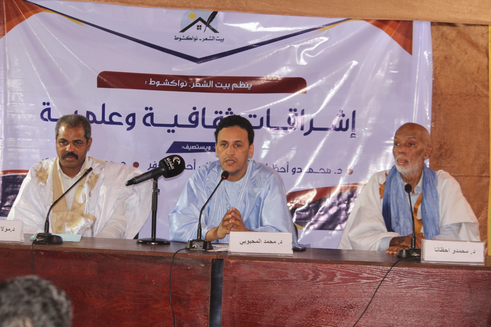 نظم بيت الشعر-نواكشوط مساء اليوم الخميس، ندوة فكرية ضمن سلسلة "إشراقات ثقافية وعلمية" التي يسعى البيت من خلالها إلى مد الجسور بين الأجناس المعرفية المختلفة، وقد أدار الجلسة الشاعر الدكتور محمد المحبوبي.