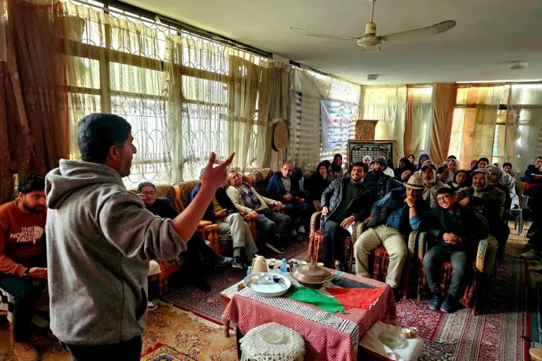 داخل خيمة مهترئة بمنطقة بشمال قطاع غزة، اجتمع شعراء ومثقفون فلسطينيون على طاولة واحدة، ضمن صالونهم الثقافي الذي توقف قسرا لأكثر من عامين بسبب حرب الإبادة الجماعية الإسرائيلية ضد سكان القطاع الفلسطيني.
