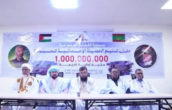 قدمت قبيلة "تاكنانت"، ليلة أمس بالمركز الثقافي بلكصر بالعاصمة نواكشوط، حصيلة تبرعها لصالح سكان غزة والذي وصل إلى مليار أوقية قديمة.