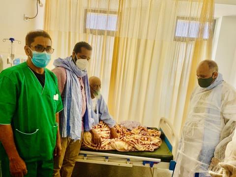 أوفد الرئيس محمد ولد الغزواني طبيبه الخاص د. ابراهيم اجاه، ومستشاره احمد سالم فاضل لعيادة الشيخ محمد محمود أحمد يوره الرباني المحجوز بمركز الاستطباب الوطني للاطمئنان على صحته بعد إصابته بفيروس "كورونا".