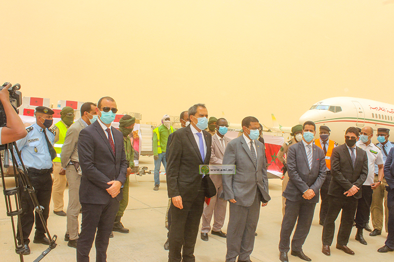 وقد استقبلت الطائرة من طرف وزير الصحة محمد نذير ولد حامد، والسفير المغربي في نواكشوط حميد شبار.