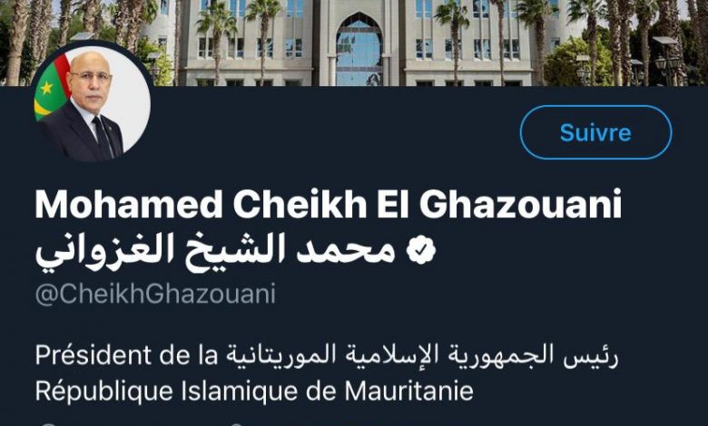 نواكشوط - المحيط + صحراء ميديا: وثقت إدارة موقع التواصل الاجتماعي « تويتر » اليوم الاثنين حساب الرئيس الموريتاني محمد ولد الشيخ الغزواني على الموقع. ويعتبر ولد الغزواني أول رئيس للجمهورية الموريتاتنة يمتلك حسابا رسميا على شبكات التواصل الاجتاعي.