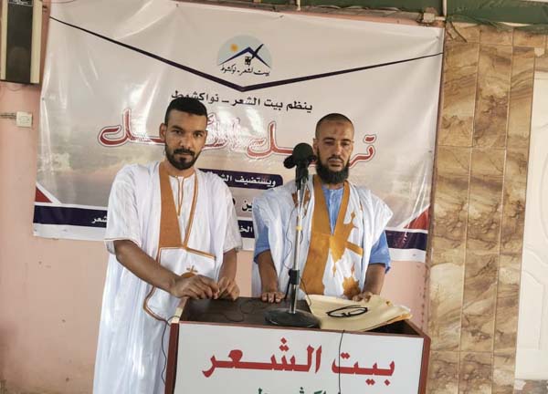 نظم "بيت الشعر - نواكشوط"، مساء اليوم (الخميس) أمسية شعرية، أحياها الشاعران: محمدو الناجي بدر الدين، ومحمد سالم أحمد محمذن، وتم بثها مباشرة على منصات التواصل الاجتماعي، وعلى قناة اليوتيب الخاصة بالبيت، وذلك في إطار التواصل مع الجمهور في هذه الظريفة التي تعيش فيها البلاد الموجة الثالثة من وباء "كورونا"؛ حيث يواصل البيت تنظيم أنشطته وفق التعليمات الاحت