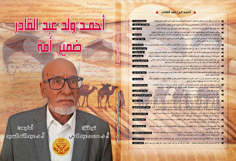صدر اليوم في نواكشوط/ تونس/ الرباط، كتاب "أحمدُّ ولد عبد القادر.. ضمير أمة"، وهو أول كتاب تكريمي احتفائي بشفاء شاعر موريتانيا الرمز ورائد أدبها الحديث أحمدُّ ولد عبد القادر.