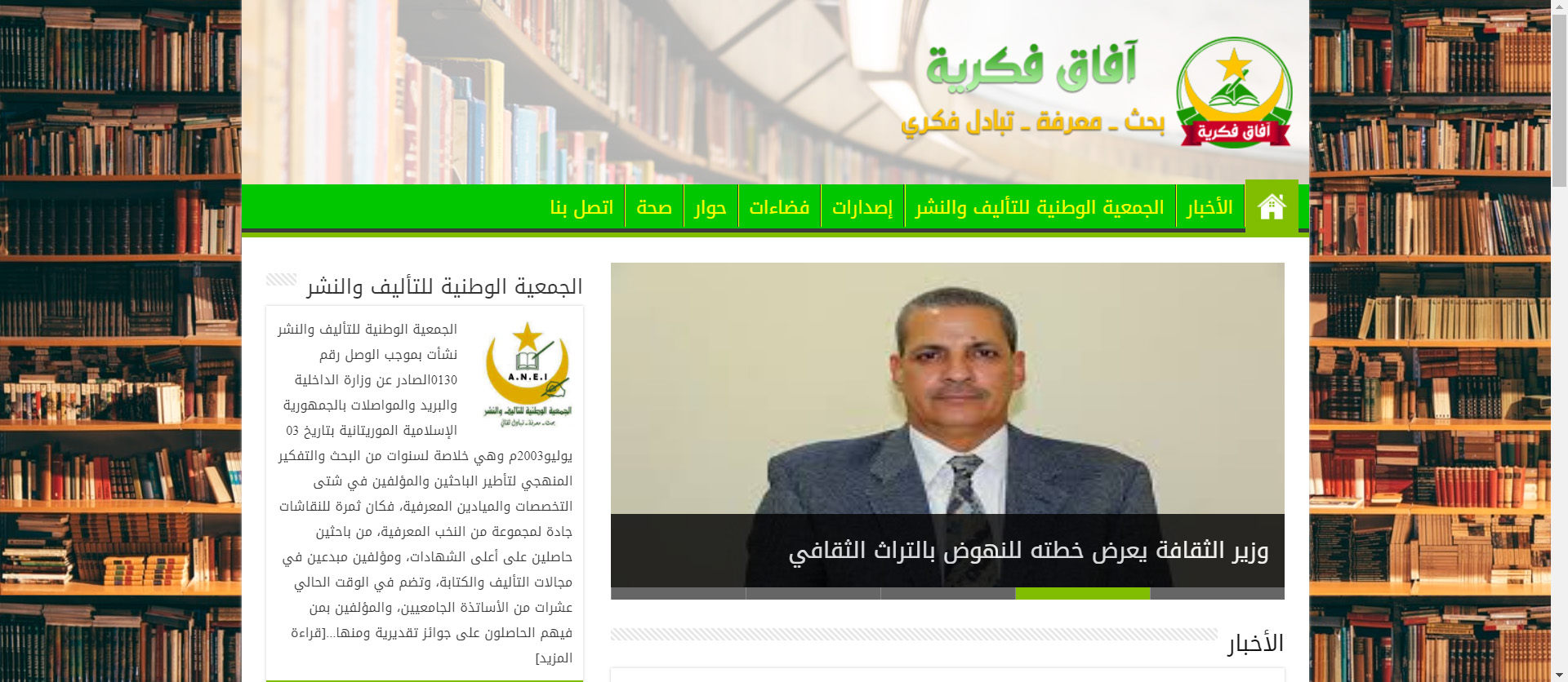 أطلقت الجمعية الوطنية للتأليف والنشر موقعا الكترونيا فكريا تحت عنوان: “آفاق فكرية” ويسعى إلى المساهمة بدماء جديدة وجادة في مختلف المعارف والعلوم، والسعي إلى التوفيق في تقريب المعاني وتبسيط الأفكار...