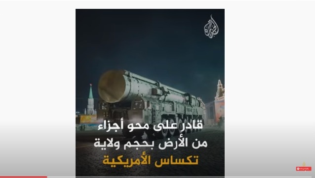 أعلن الجيش الروسيي، يوم الأربعاء، أنّه أجرى أول تجربة ناجحة على صاروخ بالستي عابر للقارّات من طراز "سارمات"، وهو سلاح من جيل جديد ومداه بعيد جداً، ووصفه الرئيس الروسي فلاديمير بوتن بأنّه "لا مثيل له".