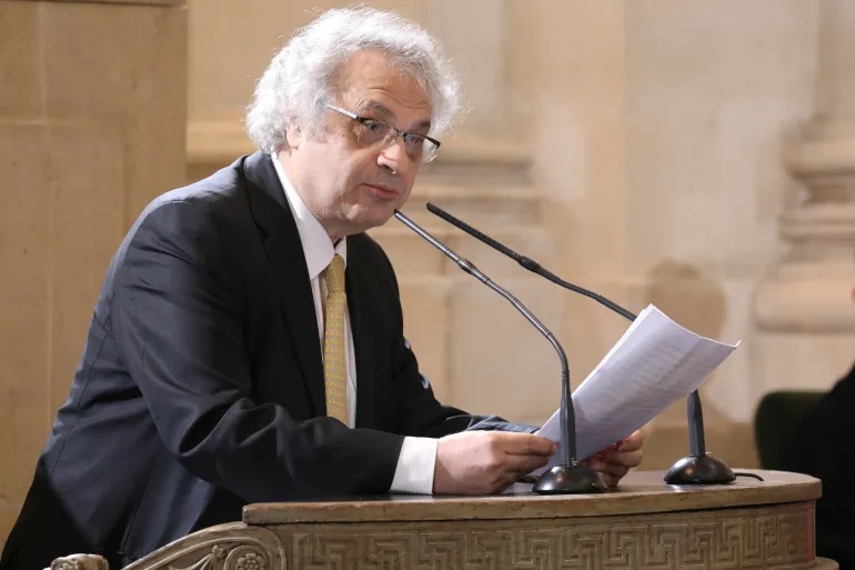 الكاتب والأكاديمي الفرنسي أمين معلوف خلال حفل أقيم في المعهد الفرنسي (رويترز)