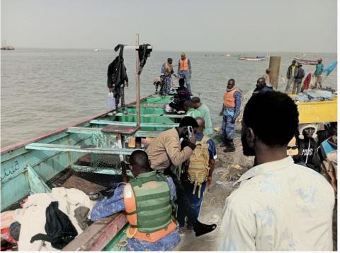 اعترضت البحرية الغامبية قاربا يحمل أكثر من 100 مهاجر غير نظامي من ضمنهم قُصر وبينهم 17 امرأة أمس الخميس وتم الوصول للقارب خلال دورة روتينية تقوم بها السلطات الأمنية البحرية بغامبيا .