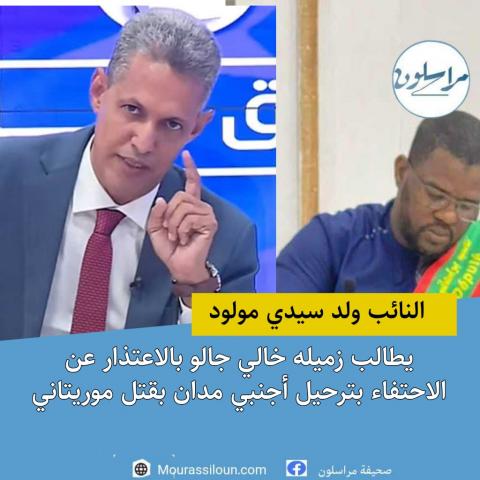 طالب النائب محمد الامين ولد سيدي مولود زميله في البرلمان "خالي جالو" بالاعتذار عن الاحتفاء بترحيل مواطن مالي مدان بارتكاب جريمة قتل بشعة في نواذيبو قبل سنوات.