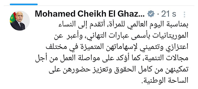 قالت وزيرة العمل الاجتماعي والطفولة والأسرة، في موريتانيا صفية بنت انتهاه، اليوم السبت، إن النهضة الحقيقية لا تبنى إلا بتغيير العقليات وتحرير الفكر من قيود الماضي.