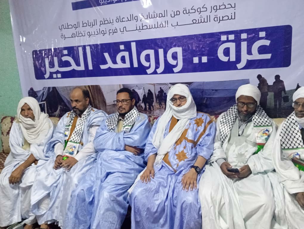 الأخبار(نواذيبو)- نظم فرع الرباط الوطني لنصرة الشعب الفلسطيني أمسية داعمة للشعب الفلسطيني في مدينة نواذيبو بحضور كوكبة من الشخصيات والفاعلين على مستوى المدينة.