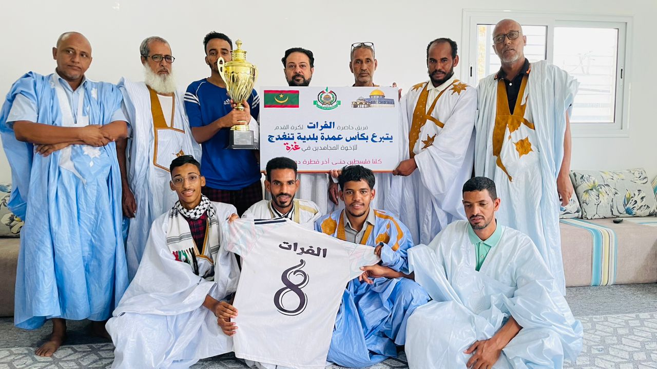 الأخبار (نواكشوط) - أعلن فريق قرية الفرات الرياضي الفائز ببطولة كأس بلدية تنغدج التابعة لمقاطعة بوتلميت في ولاية الترارزة تبرعه بقيمة الجائزة والكأس لصالح المجاهدين في غزة، وسلمها لممثل حركة المقاومة الإسلامية "حماس" في موريتانيا الدكتور محمد أبو صقر.