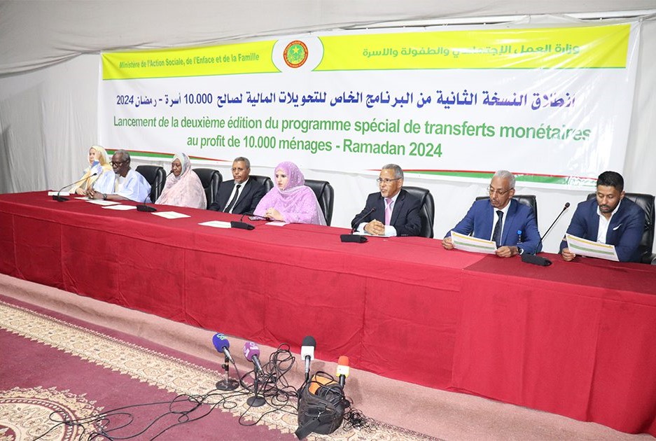 أشرفت وزيرة العمل الاجتماعي والطفولة والاسرة، صفية بنت انتهاه، اليوم الخميس في نواكشوط على إطلاق المرحلة الثانية من البرنامج الخاص للتحويلات المالية الذي يُنفذه القطاع لصالح 10.000 أسرة – رمضان 2024.