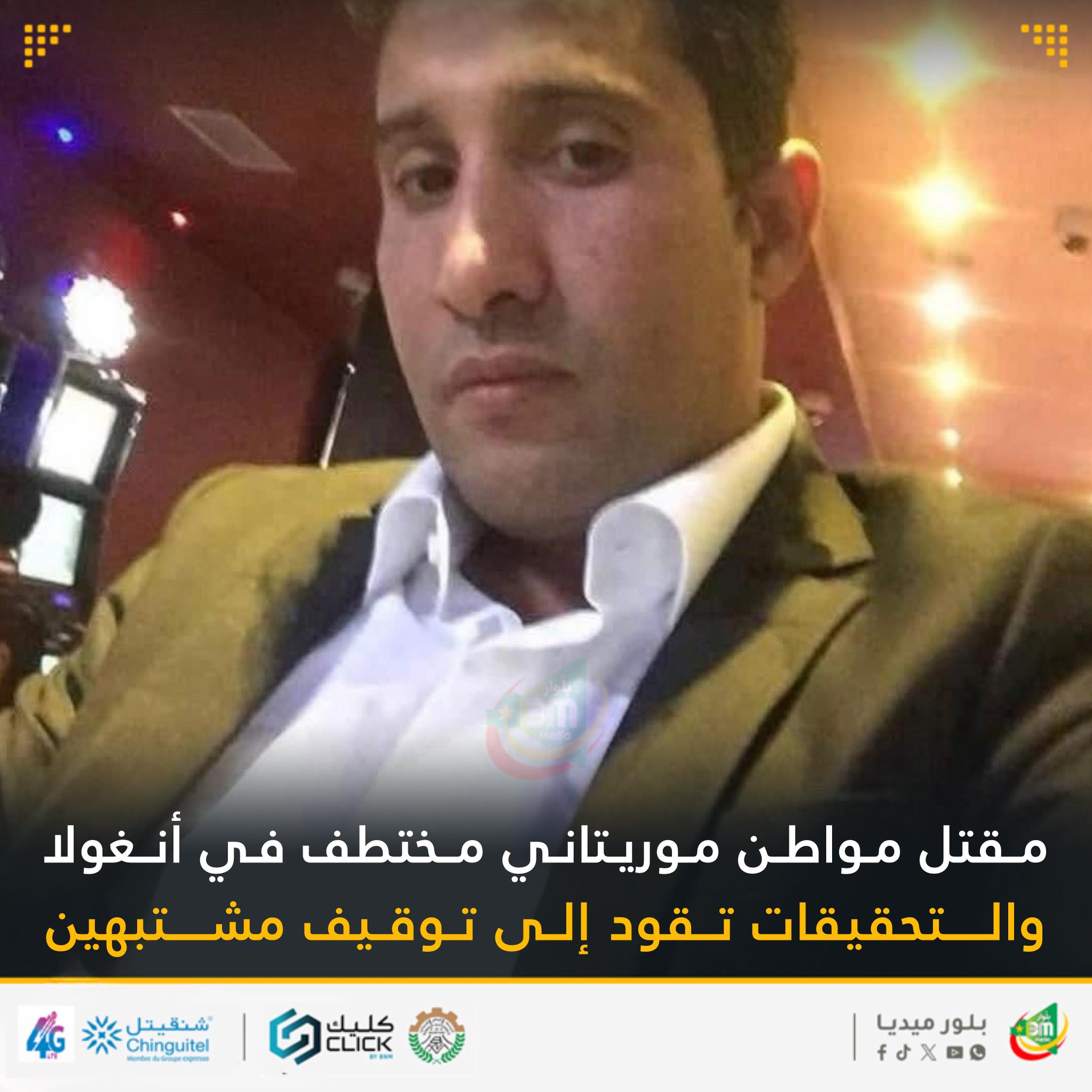 أفادت مصادر مطلعة بأن أنباء عن مقتل المواطن الموريتاني عبد الرحمن ولد صالح، الذي اختفى قبل أيام في مدينة وامبو جنوب أنغولا، قد قُتـل على يد العصابة التي اختطفته، حيث تخلّصت من جثته بإلقائها في البحر.
