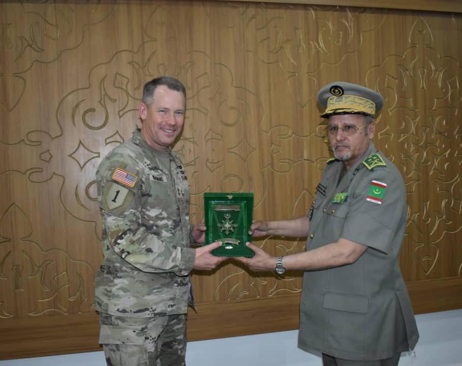 أجرى قائد أركان الجيوش بموريتانيا الفريق المختار بله شعبان اليوم الخميس في مكتبه بنواكشوط مباحثات مع وفد عسكري أمريكي بقيادة قائد القوات البرية والقوة العملياتية في أوروبا وجنوب إفريقيا ضمن "الأفريكوم" الجنرال تود واسموند.