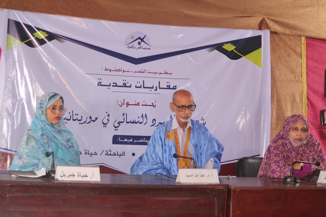 نظم بيت الشعر نواكشوط مساء اليوم الخميس 13 نوفمبر 2025 ندوة من ندوات "مقاربات نقدية" حول موضوع " شعرية السرد النسائي في موريتانيا " وقد استضافت الندوة الدكتورة تربة عمّار، والباحثة حياة جبريل، وقدم لها الأستاذ الدكتور عبد الله السيد مدير بيت الشعر.