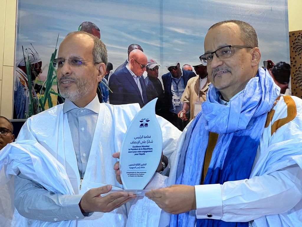 كرم حزب الإنصاف، مساء اليوم الجمعة، الرئيس محمد ولد الشيخ الغزواني، حيث تسلم درع التكريم مدير ديوانه إسماعيل ولد الشيخ أحمد.