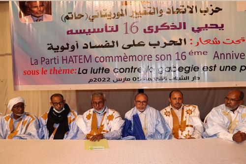 نظم حزب الاتحاد والتغيير الموريتاني "حاتم" مساء اليوم السبت بدار الشباب القديمة في انواكشوط تظاهرة لإحياء الذكرى السادسة عشرة لتأسيسه تحت شعار "الحرب على الفساد أولوية".