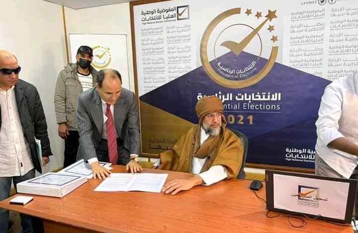 أعلنت «المفوضية الوطنية العليا للانتخابات» في ليبيا الأحد، تسلمها ملف ترشح سيف الإسلام، نجل الرئيس الراحل معمر القذافي للانتخابات الرئاسية ديسمبر المقبل.