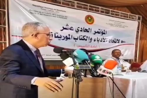 جدد معالي وزير الثقافة والشباب والرياضة والعلاقات مع البرلمان الناطق باسم الحكومة السيد المختار ولد داهي، دعم السلطات العمومية لاتحاد الأدباء والكتاب الموريتانيين والاتحاد الموريتاني للأدب الشعبي.
