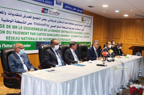 شرف محافظ البنك المركزي السيد الشيخ الكبير ولد مولاي الطاهر اليوم الخميس بفندق موريسانتر على لقاء منظم من طرف التجمع المصرفي للنقديات والمعاملات الألكترونية ( جيمتل) تم خلاله الإعلان عن قبول البطاقات المصرفية لشبكة الدفع الصيني علي الشبكة الوطنية للدفع الإلكتروني.