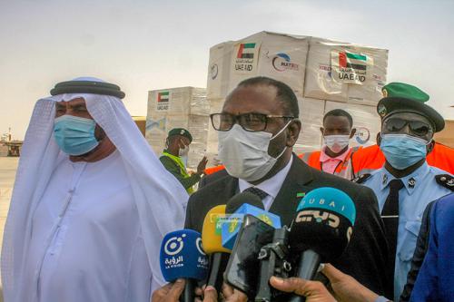 أشرف معالي وزير الصحة، السيد سيدي ولد الزحاف، اليوم الثلاثاء بمطار نواكشوط الدولي "أم التونسي"، على تسلم 100 ألف جرعة من لقاح كوفيد – 19، ومعدات طبية أخرى، مقدمة من دولة الإمارات العربية المتحدة الشقيقة، لبلادنا.