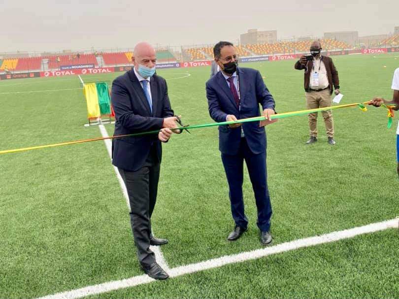 قال رئيس الإتحاد الدولي لكرة القدم الفيفا " جياني إينفانتينو " إن إنجاز ملعب نواذيبو الجديد مشروع مهم و يأتي ضمن الجهود والإنجازات المستمرة للاتحادية الموريتانية لكرة القدم.