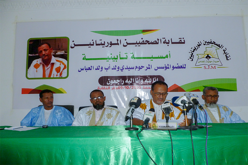 نظمت نقابة الصحفيين الموريتانيين مساء أمس الجمعة بمقرها في نواكشوط الغربية أمسية تأبينية لعضوها المؤسس، المرحوم سيدي ولد أب الذي وافاه الأجل المحتوم مطلع سبتمبر الماضي.