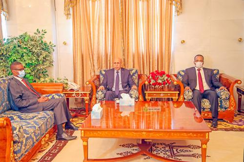 استقبل فخامة رئيس الجمهورية السيد محمد ولد الشيخ الغزواني ظهر اليوم الثلاثاء بالقصر الرئاسي في نواكشوط السيد محمد زين العابدين ولد الشيخ أحمد رئيس الاتحاد الوطني لأرباب العمل الموريتانيين بحضور الوزير الأول السيد محمد ولد بلال.