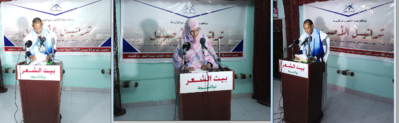 نظم "بيت الشعر - نواكشوط" مساء اليوم (الخميس)، وضمن "تراتيل الأصيل"، أمسية شعرية جديدة شارك فيها الشاعران: السالك سيدي محمد ابابي، ومحمد يمهلُ كباد، وأدارتها الأستاذة عيشة أحمد.