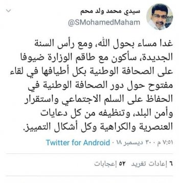 أعلن الليلة البارحة عن رحيل شيخ محظرة أهل فحفو بولاية تكانت الشيخ الطاهر ولد فحفو نجل العلامة الحاج ولد فحفو.