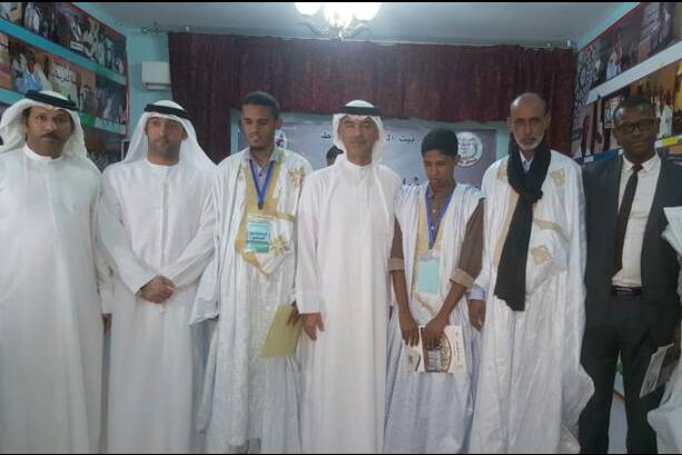 كرم سعادة عبد الله محمد سالم لعويس رئيس دائرة الثقافة بحكومة الشارقة والأستاذ الدكتور عبد الله السيد مدير بيت الشعر في نواكشوط مساء اليوم الخميس الشعراء الثلاثة الذين أحيوا الأمسية الشعرية الأولى ضمن فعاليات النسخة الثالثة من مهرجان نواكشوط للشعر العربي.