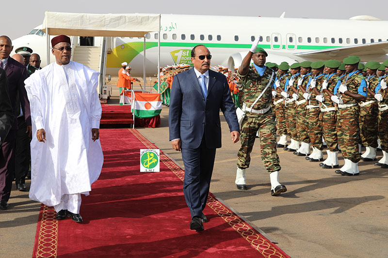 وصل رئيس الجمهورية السيد محمد ولد عبد العزيز ظهر اليوم الاثنين إلى مطار انيامى الدولي في مستهل زيارة لجمهورية النيجر يشارك خلالها في اشغال قمتي السلس ومجموعة الخمس في الساحل المقررة هناك.