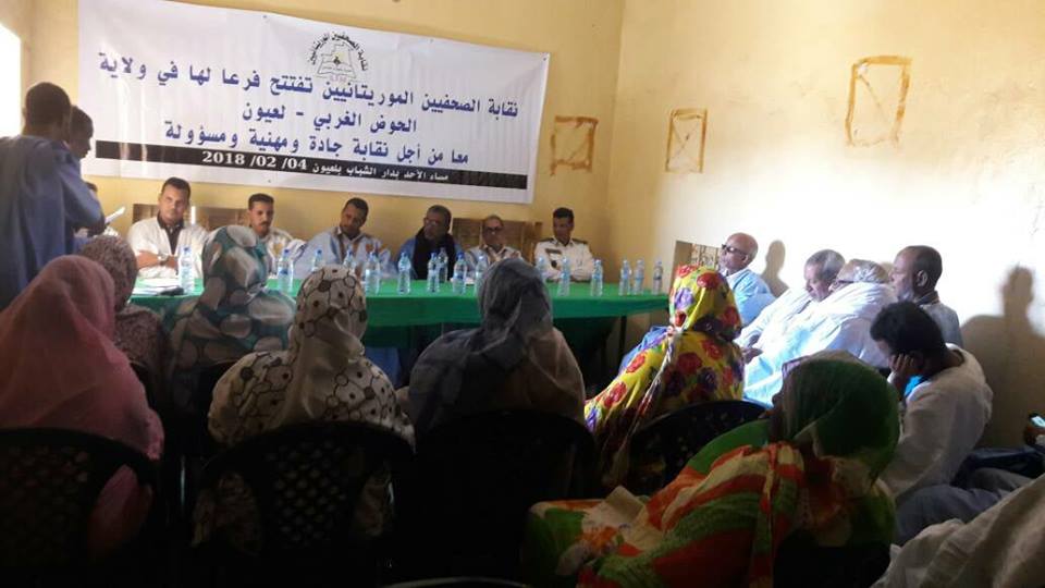 أعلن صباح اليوم في مدينة لعيون افتتاح فرع جديد لنقابة الصحفيين الموريتانيين بولاية الحوض الغربي، برئاسة الزميل الصحفي شيخنا ولد القاسم، وحضر حفل التنصيب حاكم مقاطعة لعيون وعمدتها وعدد من رؤساء المصالح الجهوية الإدارية والأمنية في ولاية الحوض الغربي، وجمع معتبر من الصحفيين من مختلف قطاعات الإعلام العمومي والمستقل، ورحب نائب نقيب الصحفيين الموريتانيين