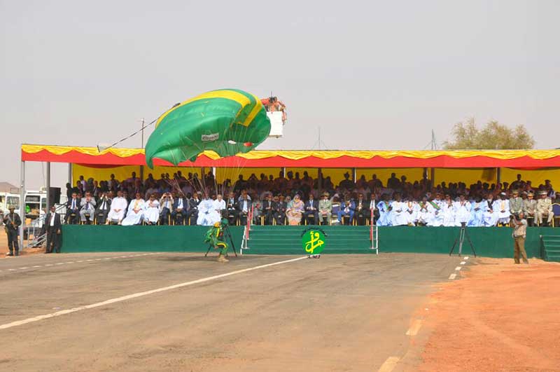ترأس فخامة رئيس الجمهورية السيد محمد ولد عبد العزيز صباح اليوم الثلاثاء بمطار كيهيدي العرض العسكري المنظم من طرف الأركان العامة للجيوش، تخليدا للذكرى السابعة والخمسين لعيد الاستقلال الوطني.
