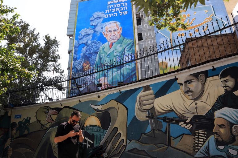 جدارية مناهضة لإسرائيل على إحدى البنايات في ساحة فلسطين بالعاصمة الإيرانية طهران (الأوروبية)