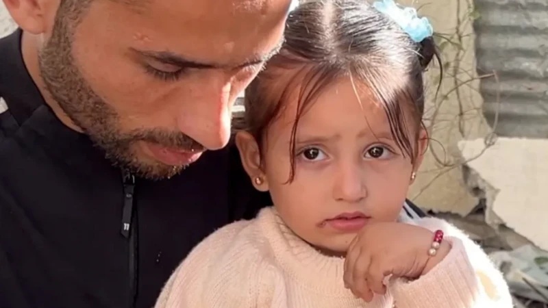 وعندما وصل صحفي البي بي سي إلى مكان العائلة في مدينة غزة -حيث نزح إليها كثيرون من جباليا- رأى جوليا مع أبيها، وجدها وأمها.