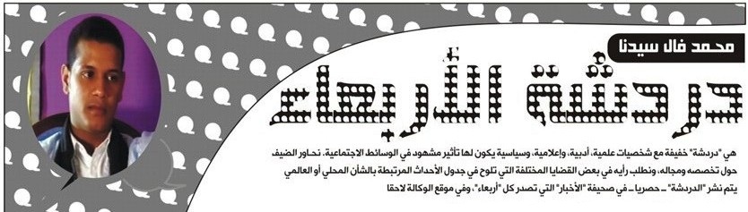 محمد فال سيدنا: بداية نشكركم على قبول "الدردشة" معنا، ونذكركم ــ والسادةَ القراء ــ أنها لا تتجاوز "ساعة" (ستين دقيقة) فلو تفضلتم بالإيجاز في الردود حتى نتمكن من تناول موضوعات مختلفة في هذه "الحلقة".