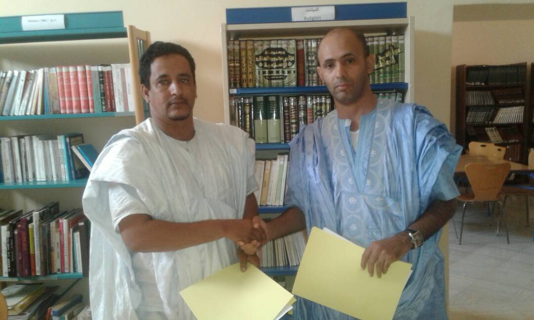 وتم توقيع الاتفاقية من طرف كل من أحمد ولد الوالد الأمين العام لاتحاد الأدباء والكتاب الموريتانيين وماء العينين محمد الأمين رئيس اتحاد الأدباء والشعراء الحسانيين في الجهات الثلاث (بالمغرب).