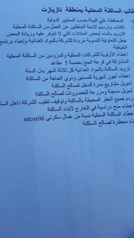 و يطالب السكان بتوفير عدد من الخدمات الرئيسية و اعتماد لائحة تشغيل في الأعمال البسيطة ـ الوثيقة