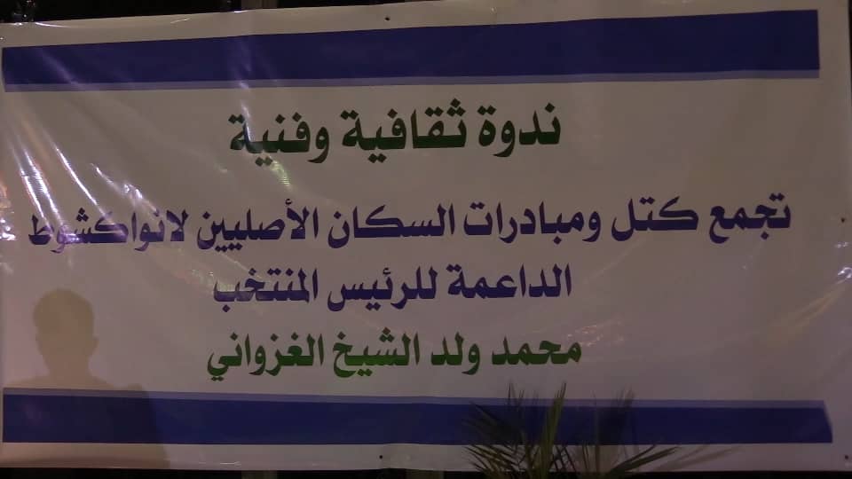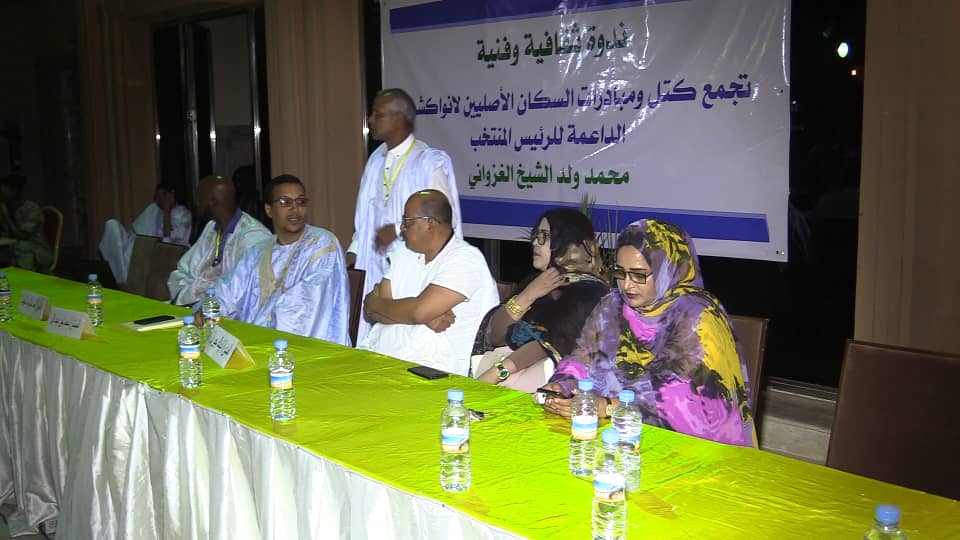أقامت نخبة من ساكنة انواكشوط الأصليين،حفلا ثقافيا وفنيا في فندق موري سانتر مساء الجمعة 5 يوليو،تهنئة ومباركة لنجاح مرشح الأجماع الوطني الرئيس المنتخب محمد ولد الشيخ الغزواني،وقد انطلق بحضور السيد المختار ولد داهي الناطق الرسمي باسم المرشح سابقا،وبحضور مستشارة وزير الثقافة السيدة مغلاه منت الليلي،وبحضور شخصيات وازنة وفاعلين سياسيين من السكان الأصليين لانواكشوط..