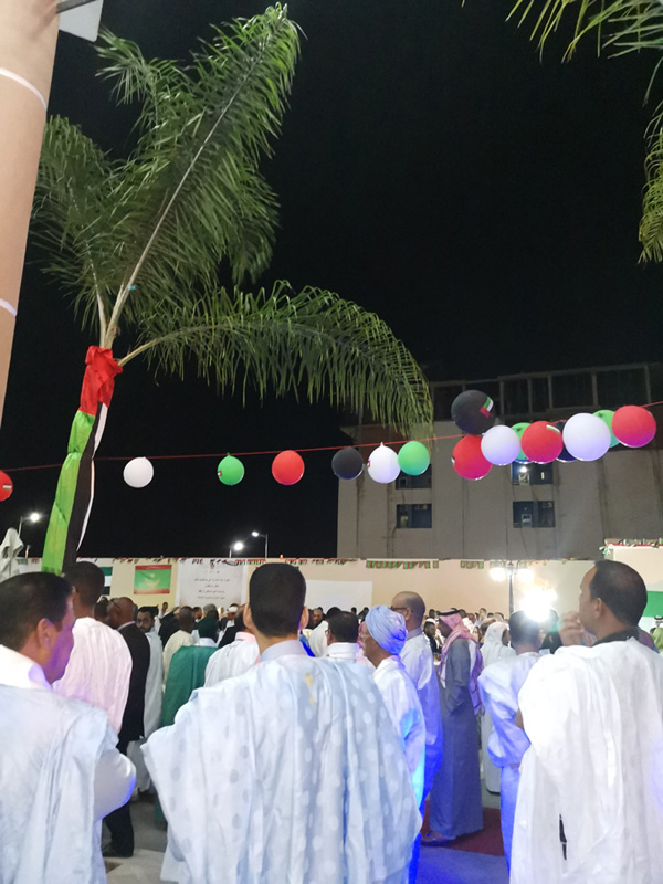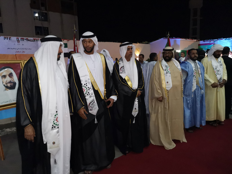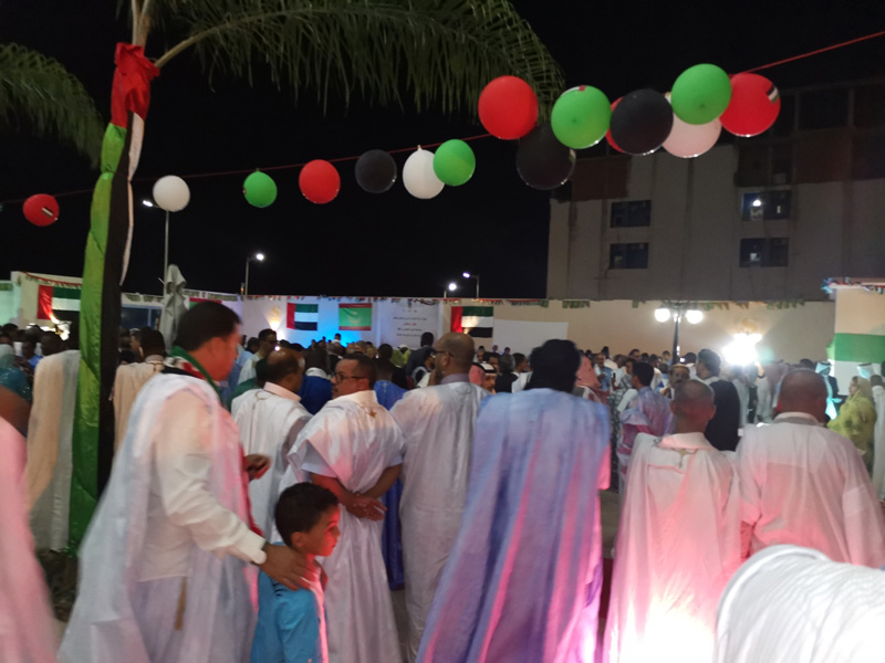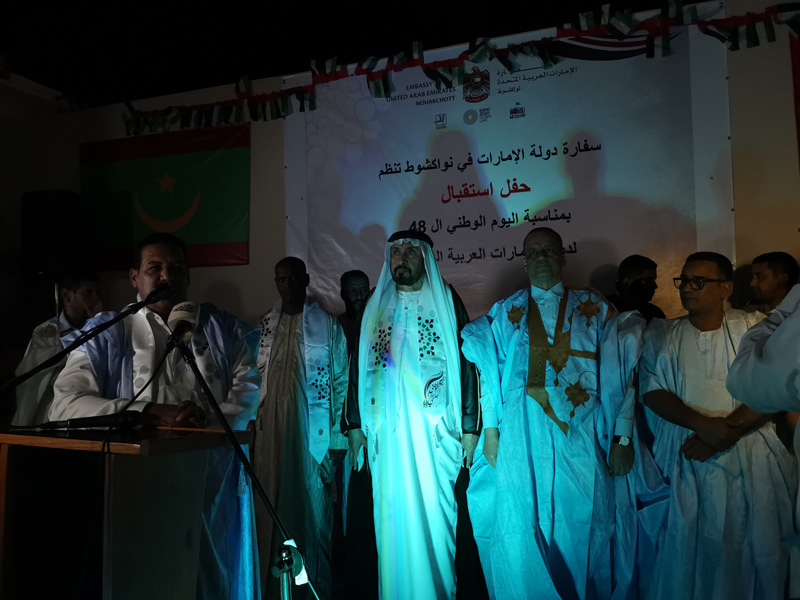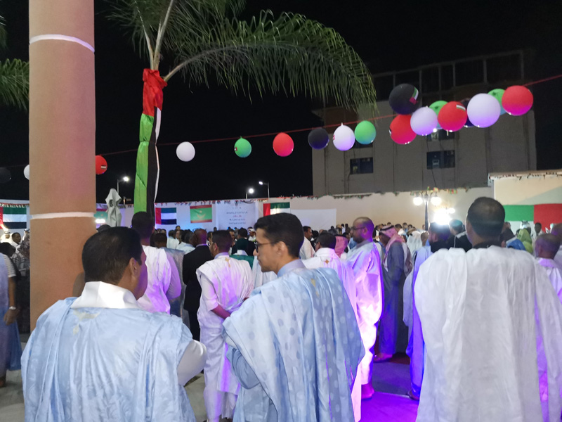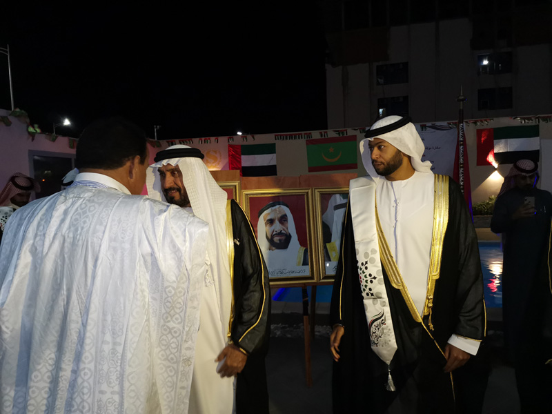 وجرت هذه الاحتفالية الكبيرة في جو بهيج بدأ باستماع الحضور إلى النشيدين الوطنيين الإماراتي والموريتاني، كما استمع الحضور إلى أغنية موريتانية تعبر عن فرحة الموريتانيين بما حققته الإمارات من إنجازات مشهودة.
