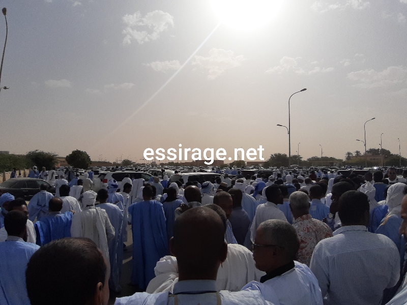 آلاف الموريتانيين حضروا الصلاة على الراحل وانتظروا من شروق الشمس حتي الساعة العاشرة حيث حضرت الجنارة من المستشفي العسكري وتمت الصلاة عليها فأمّ المصلين خليفة الشيخ يحيي فى محظرة وصهره الشيخ سيديا ولد عبد الرحمن (الحكومة ) بحضور الوزير الأول اسماعيل ولد بده وعدد من الوزراء من بينهم وزير النقل ووزير العدل وكذلك القائد المساعد لأركان الدرك الوطني وإمام الجامع الكبير أحمدو ولد لمرابط وعدد كبير من العلماء والأطر وطلاب الشيخ وجمع كبير من المواطنين