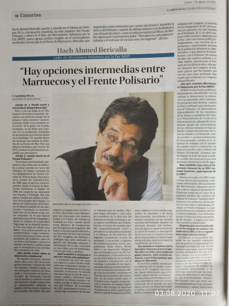المقابلة التي أجراها السكرتير الأول للحركة مع صحيفة “لابروفينثيا” الاسبانية.