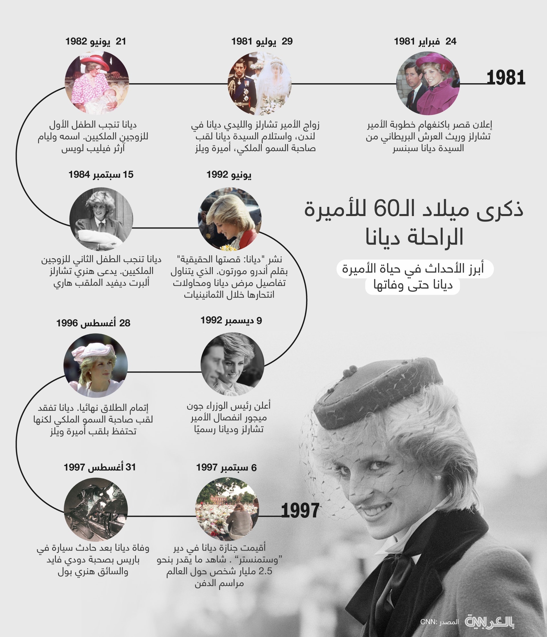 تم الكشف عن التمثال في عيد ميلاد أميرة ويلز الستين، وتم تكليفه من قبل الأخوة في 2017 لإحياء ذكرى والدتهم، وكذلك بمناسبة الذكرى العشرين لوفاتها.