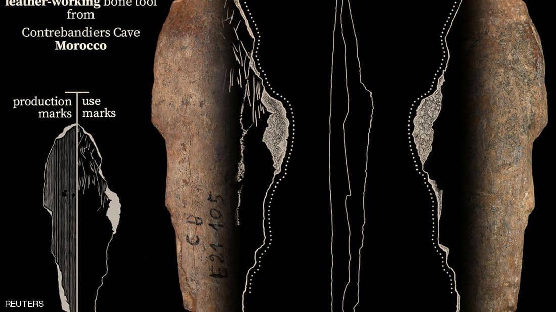 وأضافوا أن الأدوات، التي عثر عليها في مغارة المهربين التي تبعد نحو 250 مترا عن ساحل المحيط الأطلسي في مدينة تمارة، هي أقدم دليل معروف على ما يبدو على صنع كساء في السجلات الأثرية.