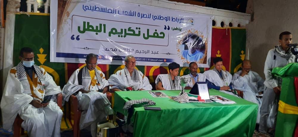 نظم الرباط الوطني لنصرة الشعب الفلسطيني ليلة الجمعة 15 أكتوبر 2021 حفلا لتكريم البطل الموريتاني لاعب الشطرنج: عبد الرحيم محمد، وذلك بحضور رئيس مجلس إدارة الرباط الوطني الوزير السابق سيدي أحمد ديه وجمع من الشعراء والمثقفين إضافة إلى اللاعب عبد الرحيم وأسرته ومدربه .
