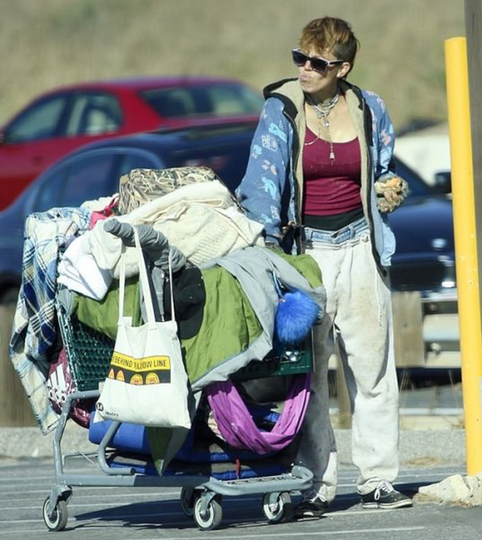 وتدثرت النجمة السابقة بقطع كثيرة من الثياب، في مسعى لتفادي البرد القارس، بينما تقضي الشتاء في الشارع.