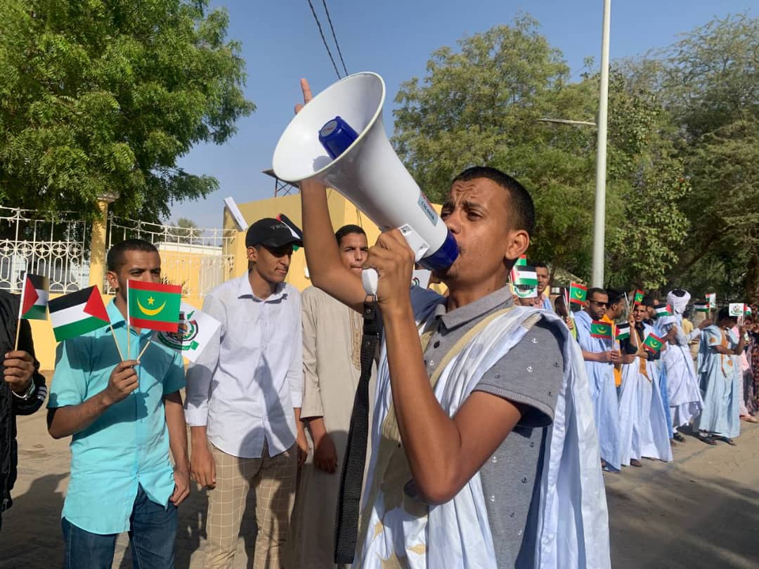 ونظمت المبادرة الطلابية لمناهضة الاختراق الصهيوني والدفاع عن القضايا العادلة مساء اليوم الأحد، وقفة احتجاجية في نواكشوط، رفضا لمسيرة الأعلام الإسرائيلية التي ينظمها مستوطنون إسرائيليون في مدينة القدس المحتلة.